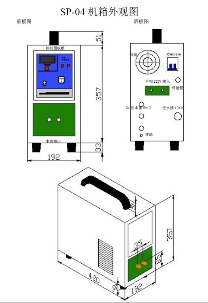 In SP-04C series machines, series oscillating circuit is applied, through high frequency transformer, low voltage and high current power is output to go through the induction coil. SP-04C series machines are the first models developed in our company, using MOSFET components and our first generation inverting control technology, the machines are featured with simple structure, high reliability and low price, and they are easy to use and to repair, and are now the most widely used machines both in China and abroad.